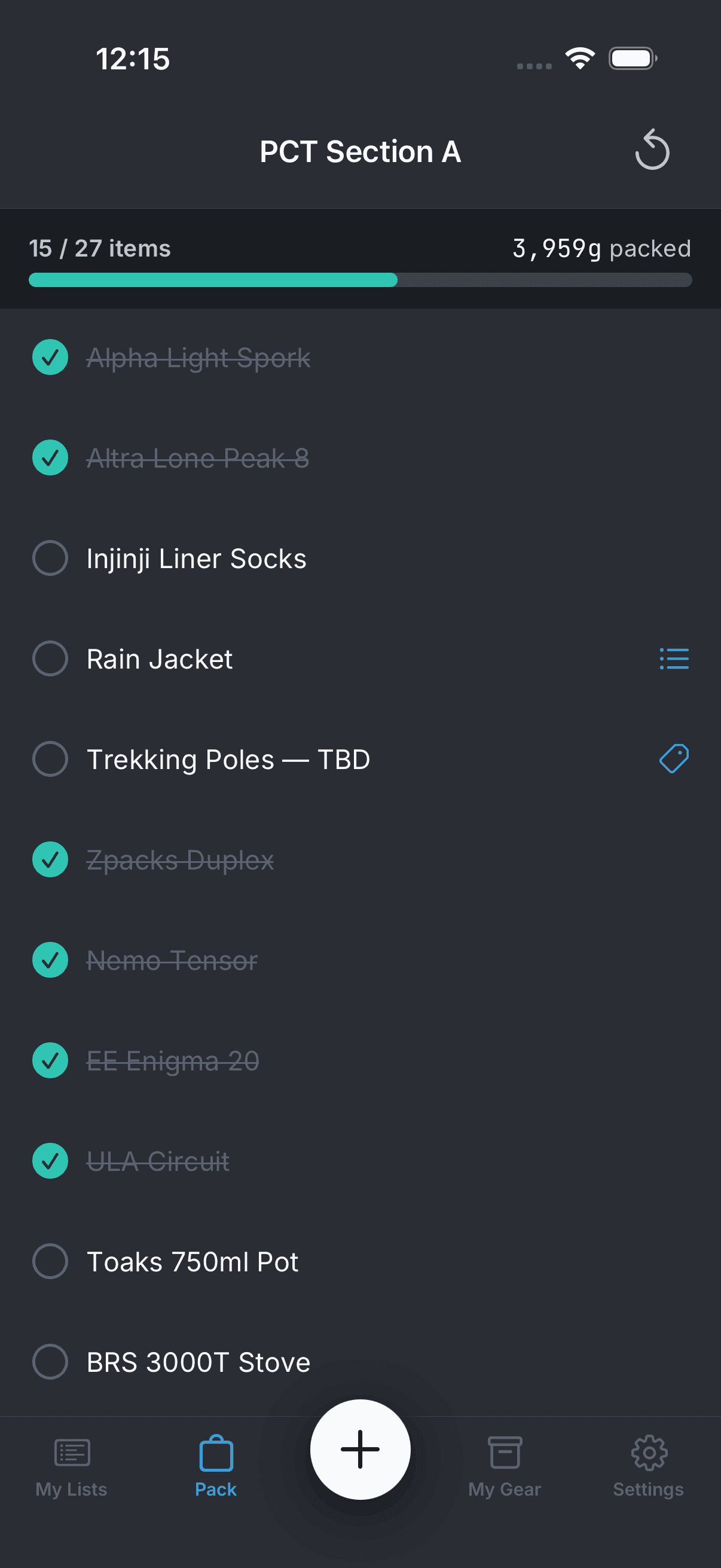 Planning for a long trail takes a lot of time. Pineline keeps your entire kit in one place so you can see what's sorted and what still needs a decision.