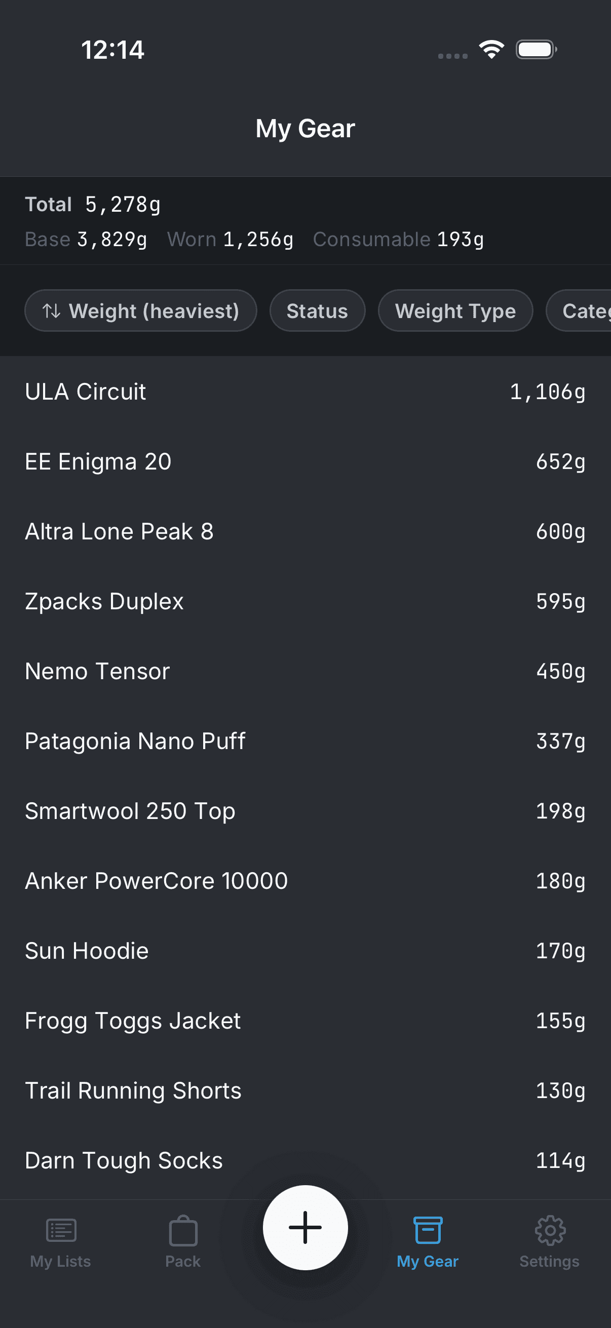 You weigh your toothbrush. You've cut the tags off your pack. Pineline tracks base weight, category breakdowns, and worn vs. carried so you can see where the grams are hiding.